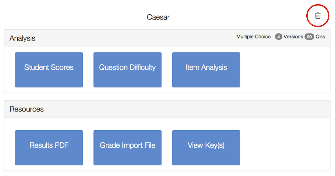In your list of tests, click on the test to be deleted. In the Control Center, find the icon of a trash can to the far right of the test name. Click on this icon and confirm that you want to delete the test. The test and all its data will be deleted.